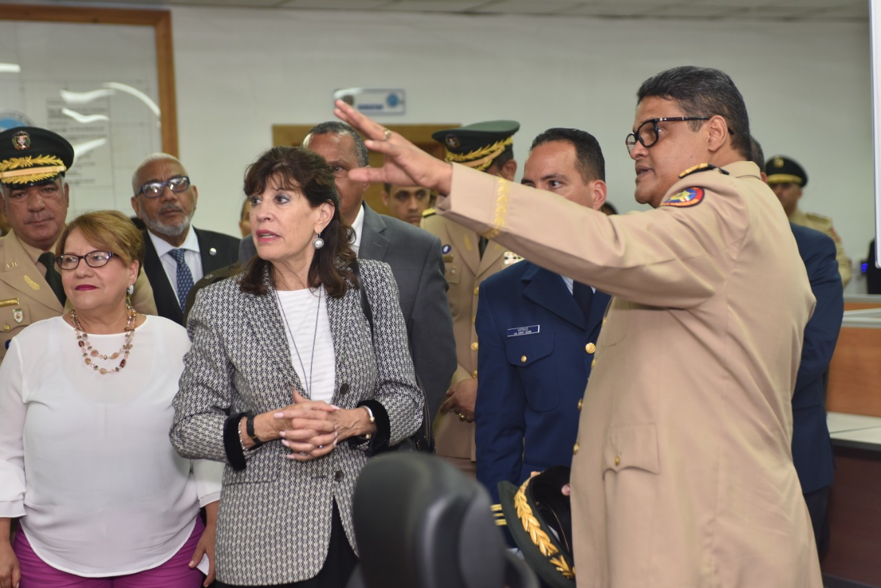 El General Méndez invitó a la diplomática estadounidense a realizar un recorrido por las instalaciones del COE, incluyendo el Centro de Comando para visualizar el trabajo de planificación y articulación con otras instituciones gubernamentales y de socorro, al igual que instituciones comunitarias para ofrecer las alertas y orientaciones a la población ante una situación de emergencia.