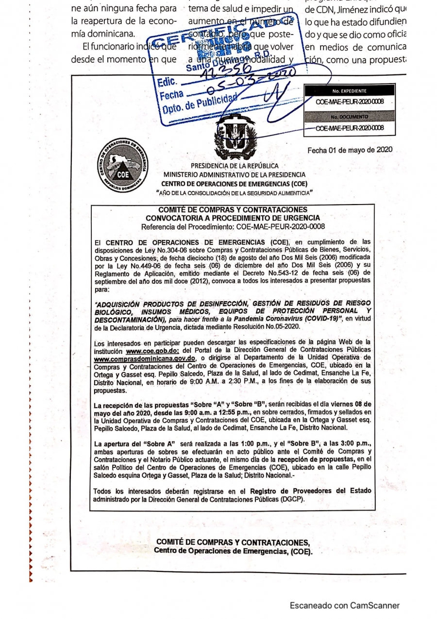 Licitación proceso de urgencia COE