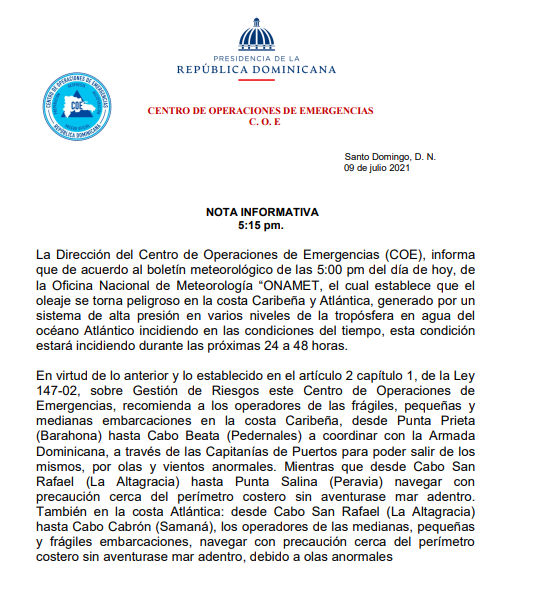 NOTA INFORMATIVA METEOROLOGICA!