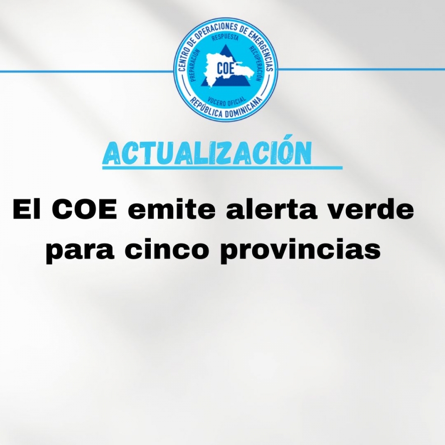 El COE emite alerta verde para 05 provincias por posibles crecidas de ríos, arroyos y cañadas, así como inundaciones repentinas o urbanas, debido a una vaguada que se desplaza de en la porción este del país, causando de manera gradual un incremento de la humedad e inestabilidad en nuestro entorno.