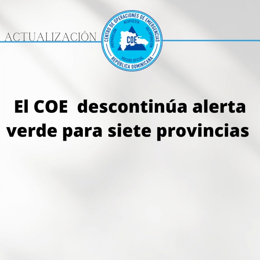 El COE descontinúa el nivel de alerta verde para 07 provincias por posibles crecidas de ríos, arroyos y cañadas, así como inundaciones repentinas o urbanas, debido a que la vaguada se alejó del territorio nacional, además del acercamiento de un sistema anticiclónico.