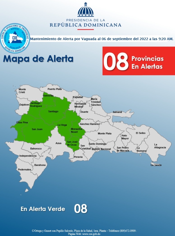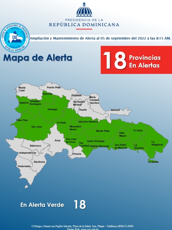 De su lado, el director del Centro de Operaciones de Emergencia, general retirado Juan Manuel Méndez, recordó que 12 provincias se encuentran en alerta amarilla y siete en alerta verde.